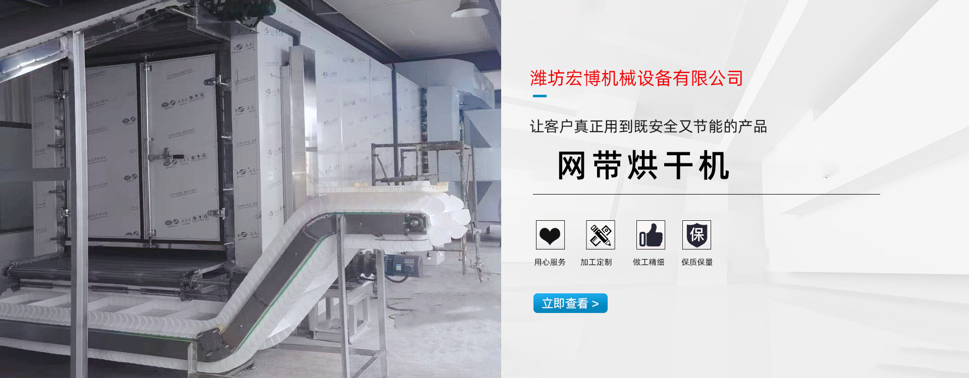 我公司主要產品有:網帶烘干機、滾筒烘干機、隧道窯、燃氣熱風爐、電熱風爐、礦用防爆電加熱器等。產品主要用于礦業、食品、飼料、耐火材料、金屬選礦、非金屬礦產品、等各種物料的加工,烘干及高大型車間和礦井的采暖。